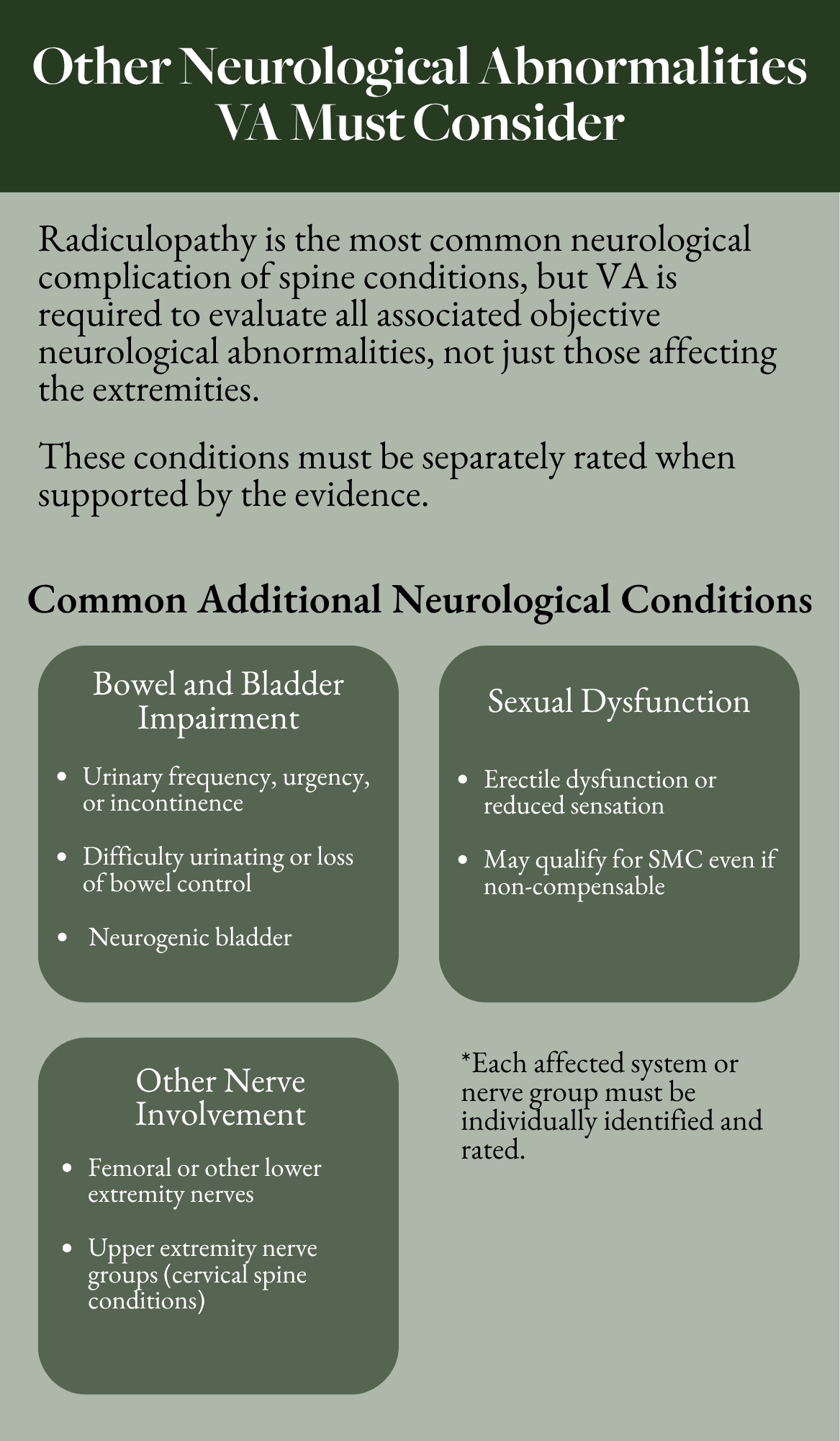 Failure to assign or properly evaluate radiculopathy is one of the most common VA errors in spine claims.