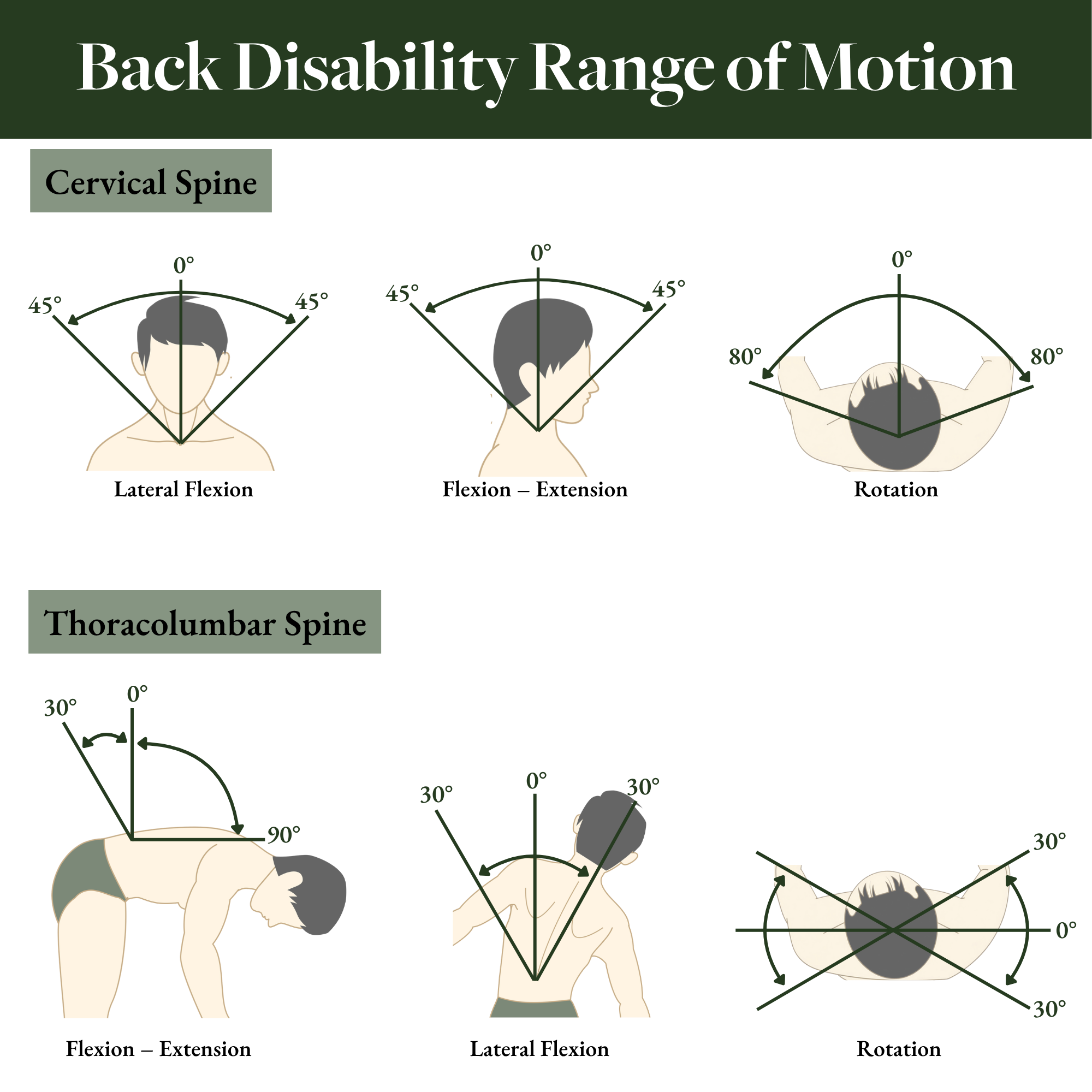 Forward flexion, extension, and combined range of motion